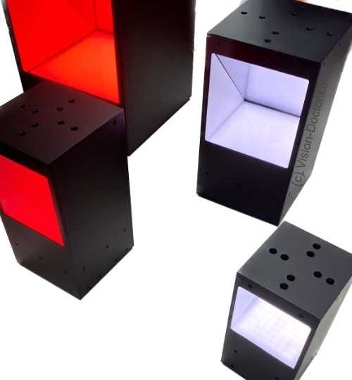Variationen dieser Beleuchtung sind leicht gewölbte Beleuchtungen, die einen viel kleineren Raumwinkel ausleuchten können, oder tunnelartige Dombeleuchtungen, die eine längliche Kuppelform haben und ideal für die Beleuchtung zylindrischer Objekte sind.