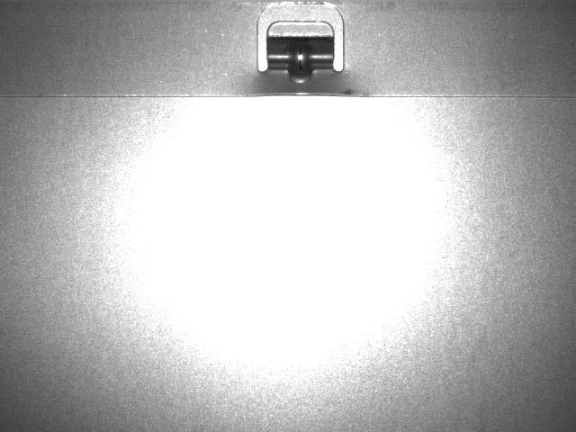 Das hier gezeigte Schema zeigt bereits den fließenden Übergang von der Hellfeld- zur Dunkelfeldbeleuchtung. Die Oberfläche ist durch Streulichteffekte an der leicht strukturierten Oberfläche noch soweit aufgehellt, dass das Bauteil gut erkennbar ist. Schräge Kanten und Kerben leuchten jedoch bereits dunkelfeldtypisch heller auf als die übrigen Bildbereiche.