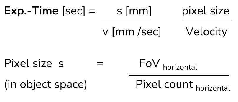Different tolerances are possible depending on the application. A blur of 0.5 to 2 pixels is usually no longer visible to the eye, but still has a negative effect on the accuracy of the measurement results. However, this value is sufficient for many standard applications. In practice, typical exposure times are often between 0.1 and 20 ms.