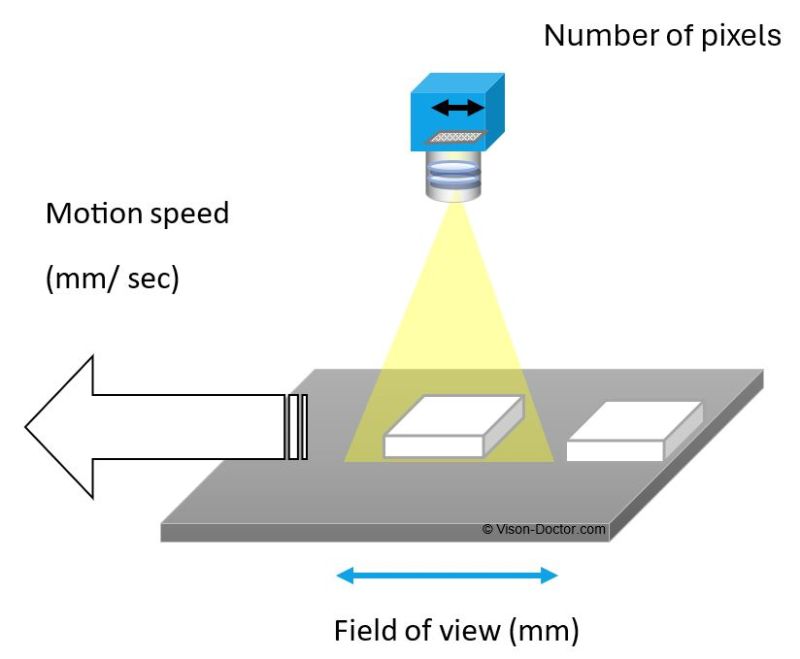 A lens is used to map the object information onto the sensor pixels with pixel accuracy. If the object moves during the exposure time, the image information is not only exposed on a single pixel, but also on neighbouring pixels, depending on the direction of movement. This blurs the image in the direction of movement. Moving objects must therefore be photographed with a very short exposure time.