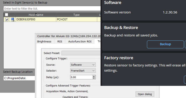 To ensure smooth operation, it is essential to regularly back up inspection programmes, calibration data, white balance settings, and camera settings (e.g. GenlCam settings). It is surprising how many different places important configuration files can be hidden!