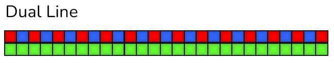 Aus Gründen der Auflösung von Single-Line RGB-Sensoren wurde das Single-Line Prinzip für diesen Sensortyp modifiziert. Dazu wird ein Dual-Line-Sensor verwendet, der über eine rein grünempfindliche Zeile verfügt, die andere Zeile ist alternierend 1-Chip-Farbkamera mit einem Farbfiltermosaik mit Rot und Blau versehen.