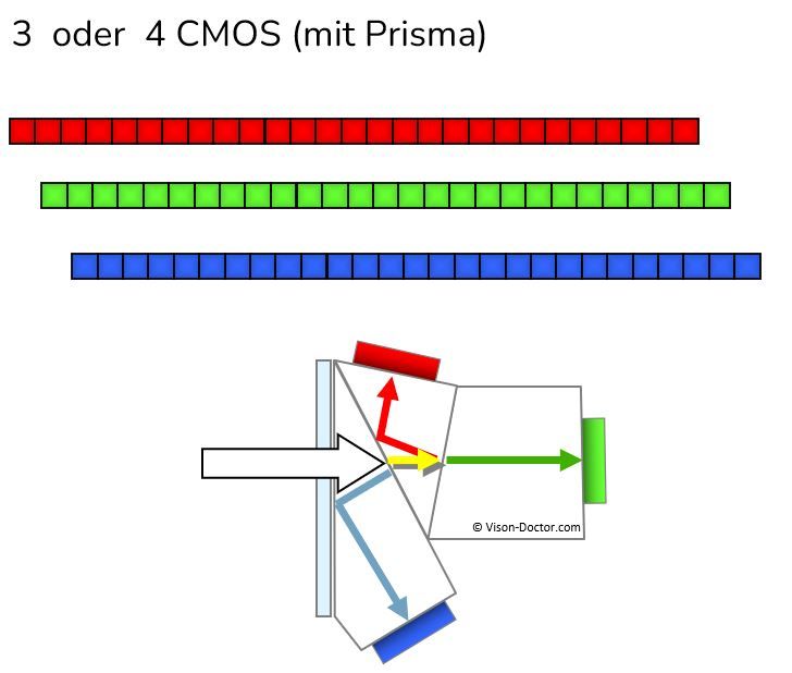 3CMOS- oder 4CMOS Zeilen mit Prisma