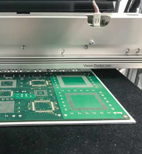 Auch große und lange Objekte wie Flachbildschirme und elektronische Baugruppen können hochauflösend inspiziert werden. Typische Anwendungen sind die Inspektion von Oberflächenfehlern und die Prüfung von Druckbildern.