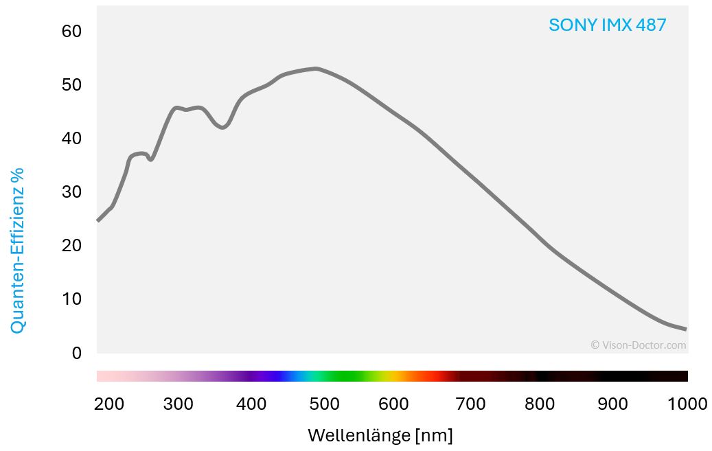 Für anspruchsvollere UVB (280-315 nm) und UVC (<280 nm) Bildverarbeitungswendungen bietet der SONY IMX487 eine deutlich höhere Quanteneffizienz. Dies macht ihn zu einer ausgezeichneten Wahl für Anwendungen, bei denen es auf hohe Empfindlichkeit und Präzision ankommt, wie zum Beispiel in der medizinischen Bildgebung und der Forensik.