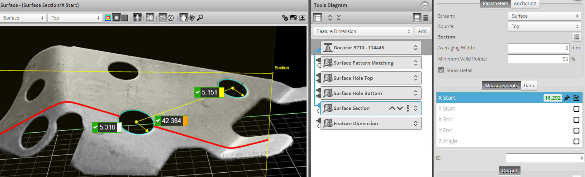 Ein echtes, korrektes Messen im Raum ist möglich, da die reale 3D-Form des Bauteils bekannt ist.